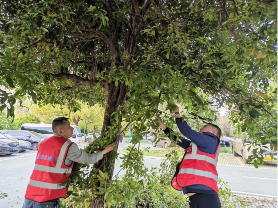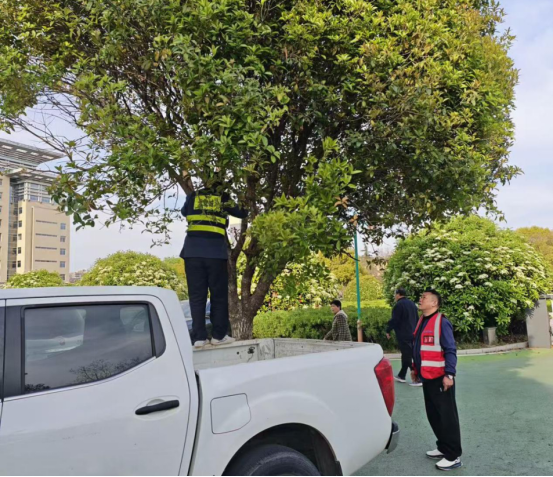 修剪現(xiàn)場,黨員們率先垂范,手持修剪鋸、高枝剪等工具,分工協(xié)作、密切配合。針對車位上方低垂的枝條,工作人員小心翼翼地分段修剪,避免枝條掉落損壞周邊車輛;對于生長過于茂密、遮擋視線的側(cè)枝,逐一進行清理,確保行車通視線清晰通透。修剪下來的樹枝枝葉,工作人員及時打包清運,做到 “隨剪隨清”,保持停車場環(huán)境整潔有序。經(jīng)過一天的緊張作業(yè),原本擁擠雜亂的停車環(huán)境變得整潔規(guī)范。